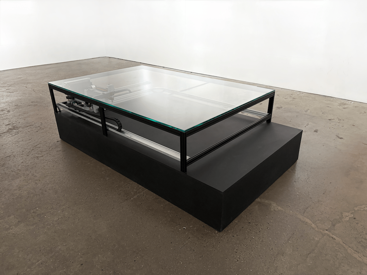 Luke Shannon’s plotter-scanner has returned to HEFT. Now on view inside WATCHING, the machine extends this exhibit’s conversation into the physical realm at a personal scale: a hybrid device that sees, reads, and replicates this vision through mechanical precision.